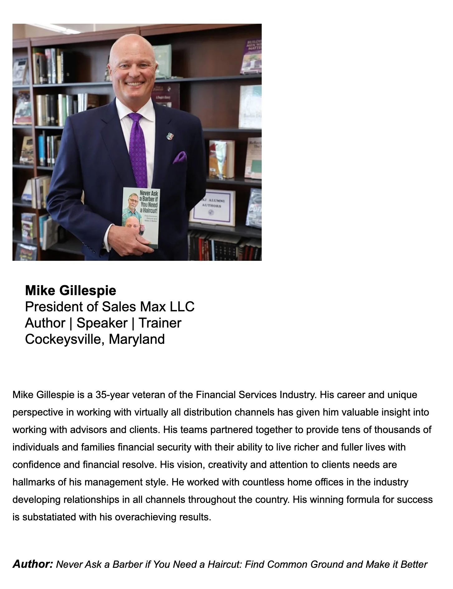 35 years of professional sales management experience, published author, engaging speaker.What are your Corporate objectives? We will help deliver your Corporate vision by blending our proven formula of maximizing results. We will draw from our experience to message a unique and powerful message blending best practices with entertaining and informative case studies.From sales techniques to developing sales ideas to working with all available resources let us help your teams maximize their true potential.Our mission is to drive incremental revenue and to increase professional effectiveness. Fun, charismatic ideas and common sense coupled with back to basics; will help your teams move forward into the New reality of a post-COVID world!